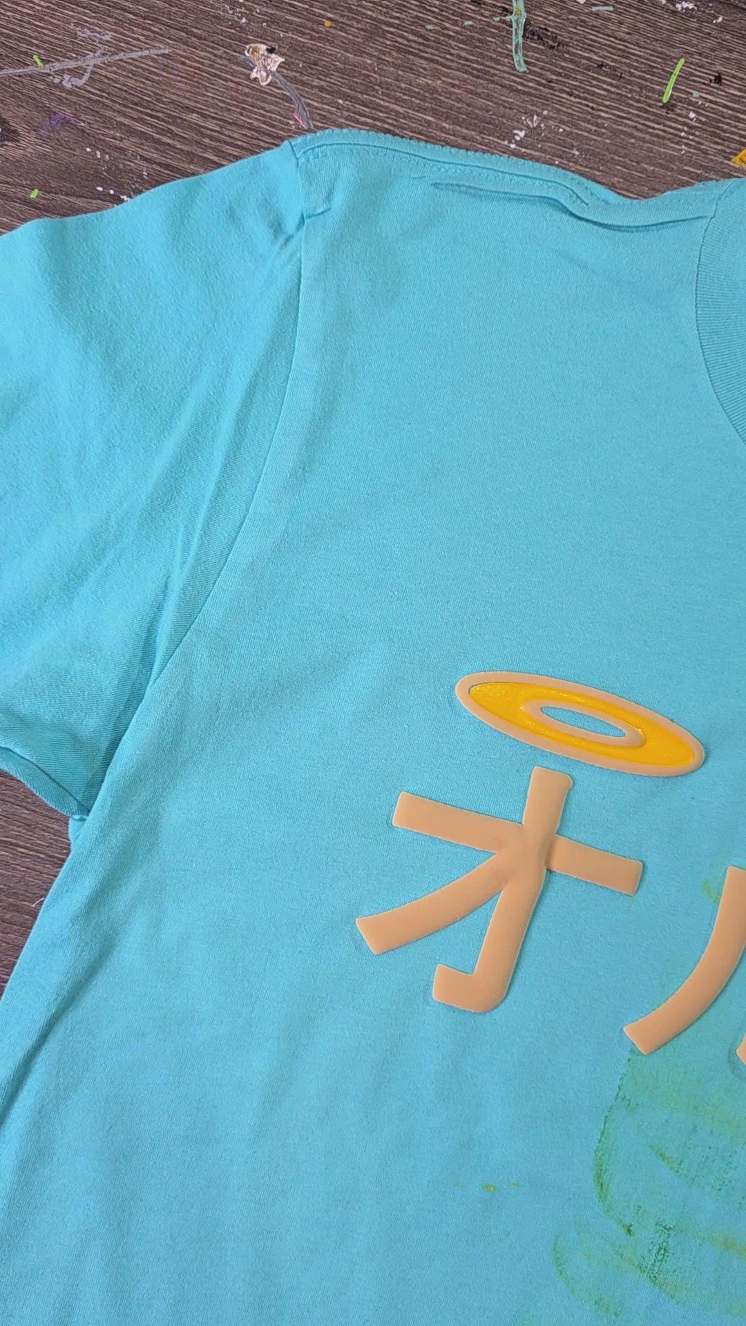 Each shirt is a one-of-a-kind piece, custom painted with brushstrokes by pop artist GusColors. No two are alike—every design is uniquely handcrafted, making each tee a wearable work of art.