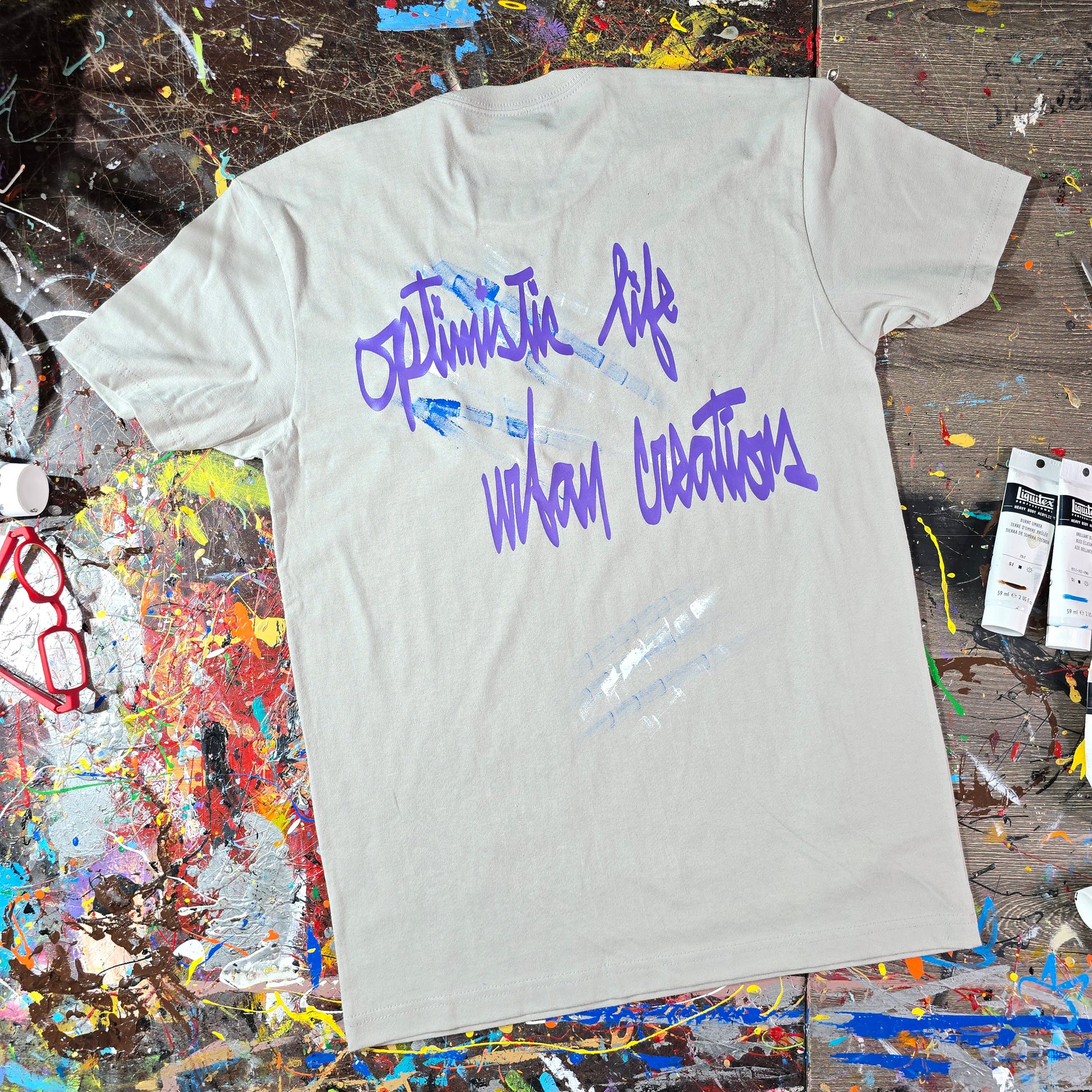 Each shirt is a one-of-a-kind piece, custom painted with brushstrokes by pop artist GusColors. No two are alike—every design is uniquely handcrafted, making each tee a wearable work of art.